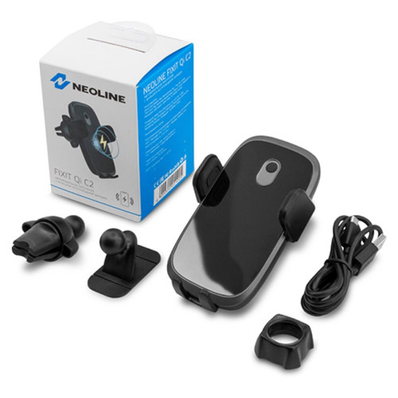Автомобильный держатель Neoline Fixit Qi C2 отличается стильным дизайном и наличием беспроводной зарядки с высокой конверсией энергии и мощностью в 10 Вт. Модель выделяется наличием сразу двух видов установки крепления: как на панель, так и в решетку дефлектора. Позволяет вращать смартфон на 360 градусов. Поддерживает смартфоны до 6,5 дюймов.